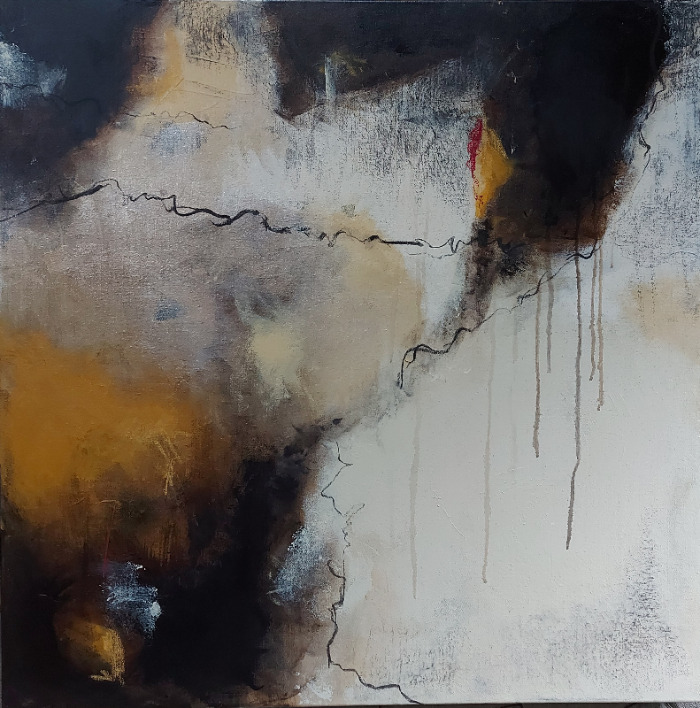 Sie experimentiert mit Farben und Formen und versucht Gefühltes auf die Leinwand zu bringen. Der Gestaltungsprozess ist bestimmt vom Auftragen vieler Farbschichten und der Reduktion auf das Wesentliche.